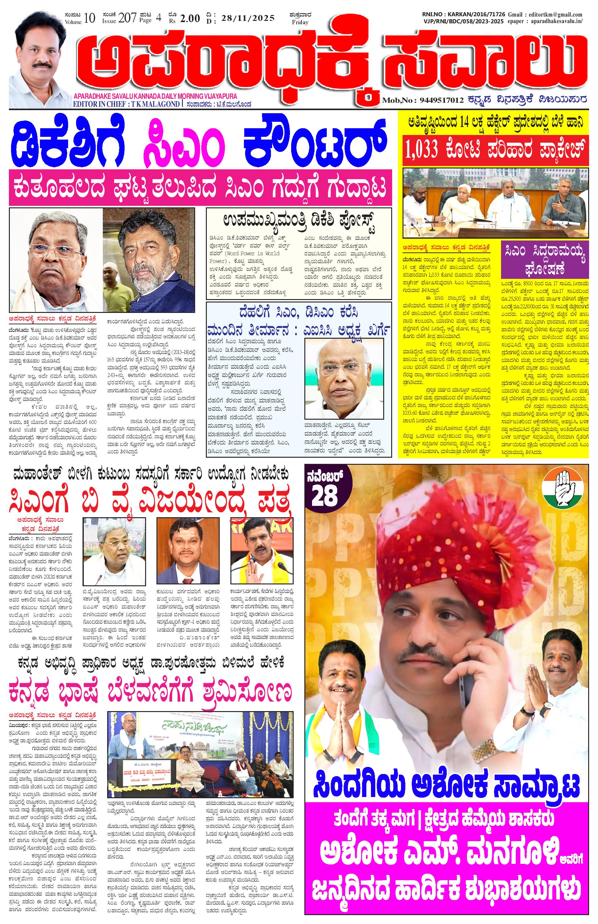 APARADHAKE SAVALU KANNADA DAILY NEWS PAPER VIJAYAPUR