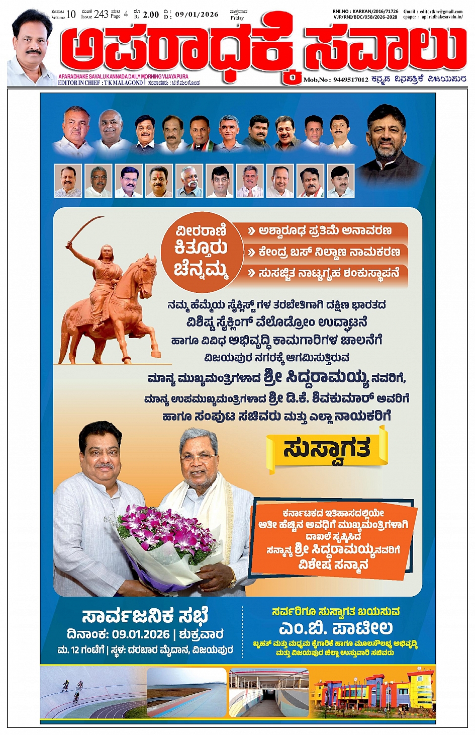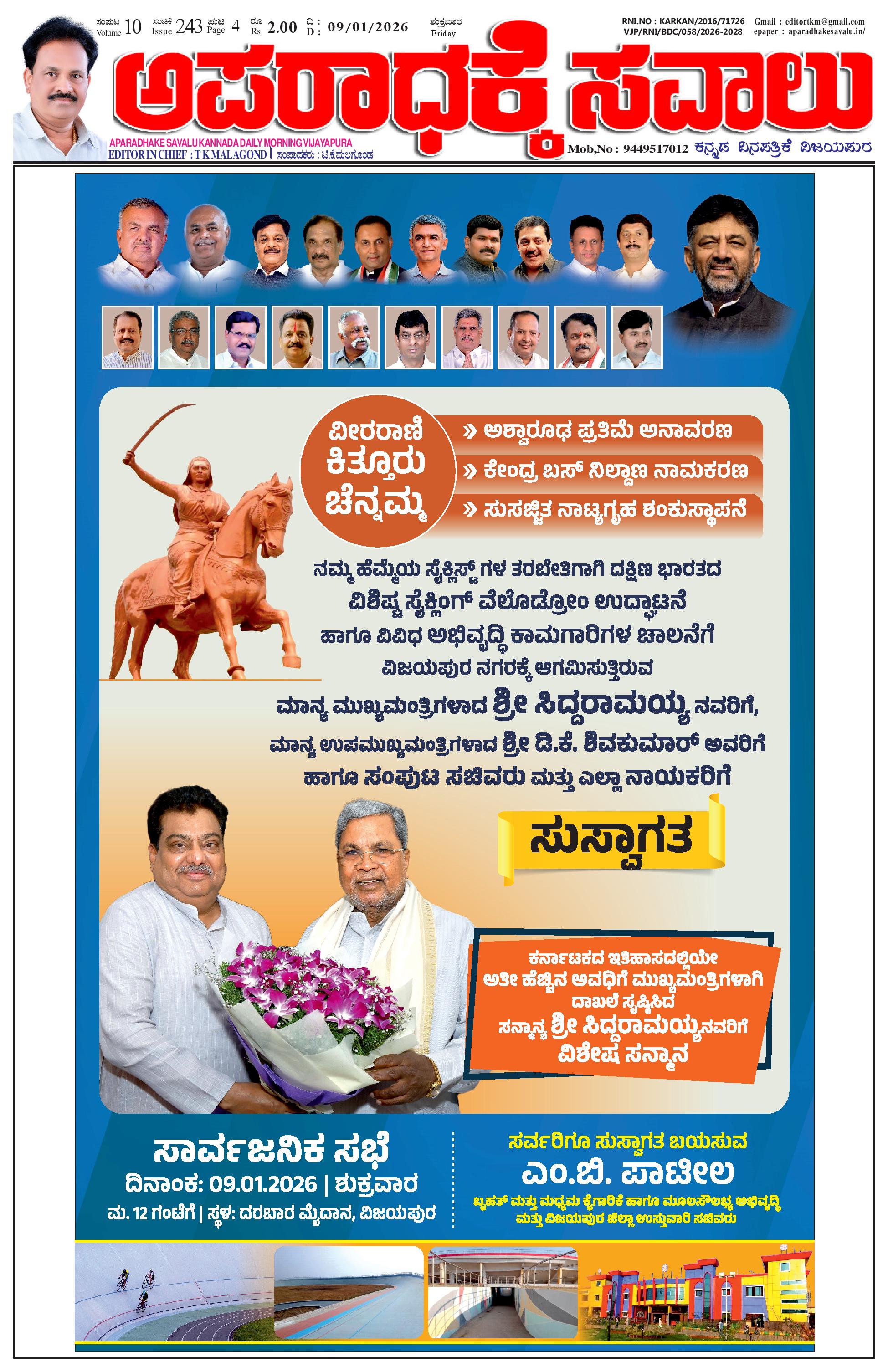 ಅಪರಾಧಕ್ಕೆ ಸವಾಲು JANUARY 09-01-2026 ePaper January 09, 2026 APARADHAKE SAVALU KANNADA DAILY MORNING NEWS PAPER VIJAYAPUR << First << 1 >> Last >> Page 1Page 2Page 3Page 4 × ಅಪರಾಧಕ್ಕೆ ಸವಾಲು JANUARY 09-01-2026 ePaper P-1P-2P-3P-4 << First << 1 >> Last >> P-1P-2P-3P-4 P-1
