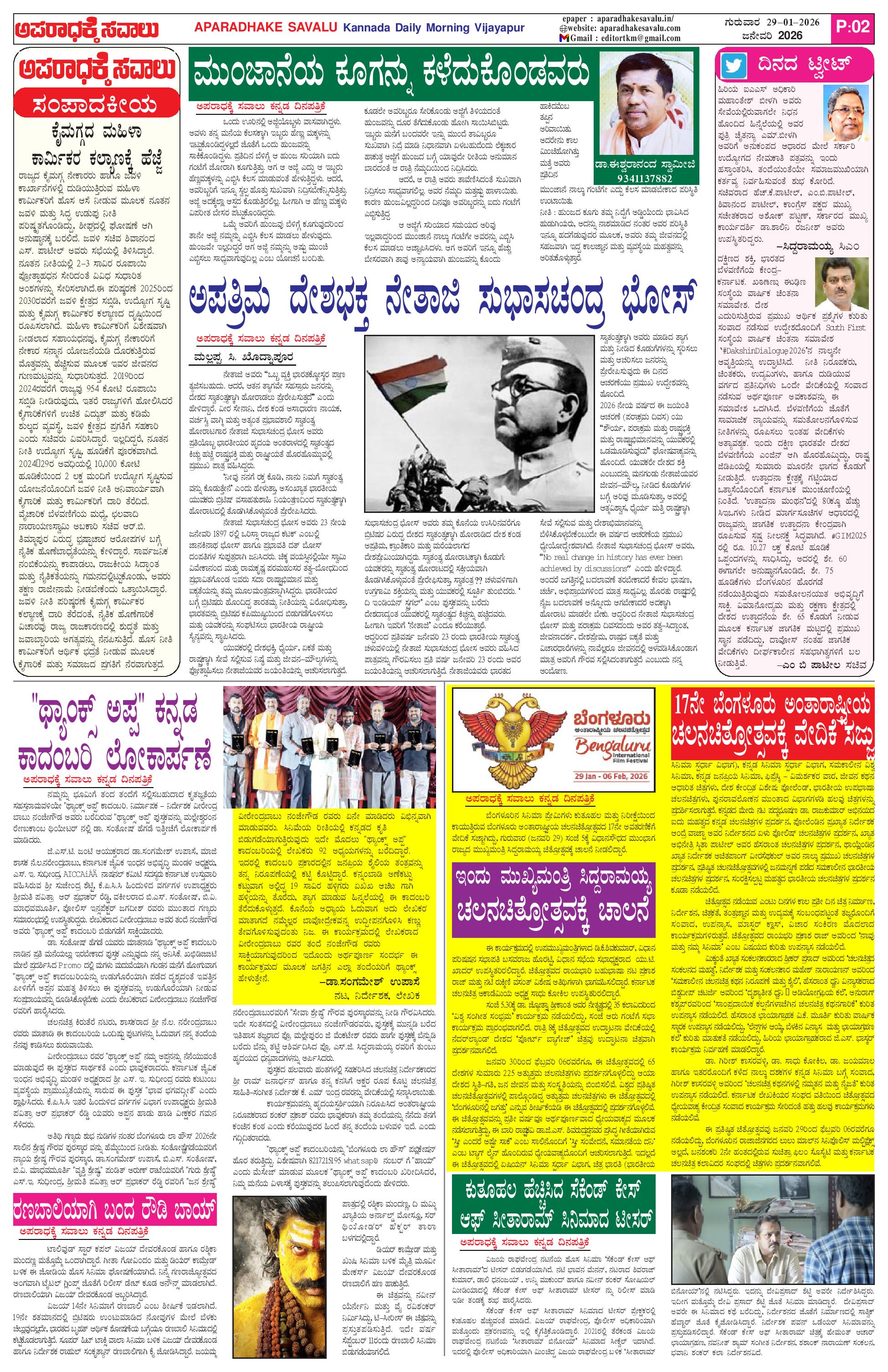 ಅಪರಾಧಕ್ಕೆ ಸವಾಲು JANUARY 29-01-2026 ePaper Page: 2 January 29, 2026 APARADHAKE SAVALU KANNADA DAILY MORNING NEWS PAPER VIJAYAPUR << First << 2 >> Last >> Page 1Page 2Page 3Page 4 × ಅಪರಾಧಕ್ಕೆ ಸವಾಲು JANUARY 29-01-2026 ePaper P-1P-2P-3P-4 << First << 2 >> Last >> P-1P-2P-3P-4 P-2
