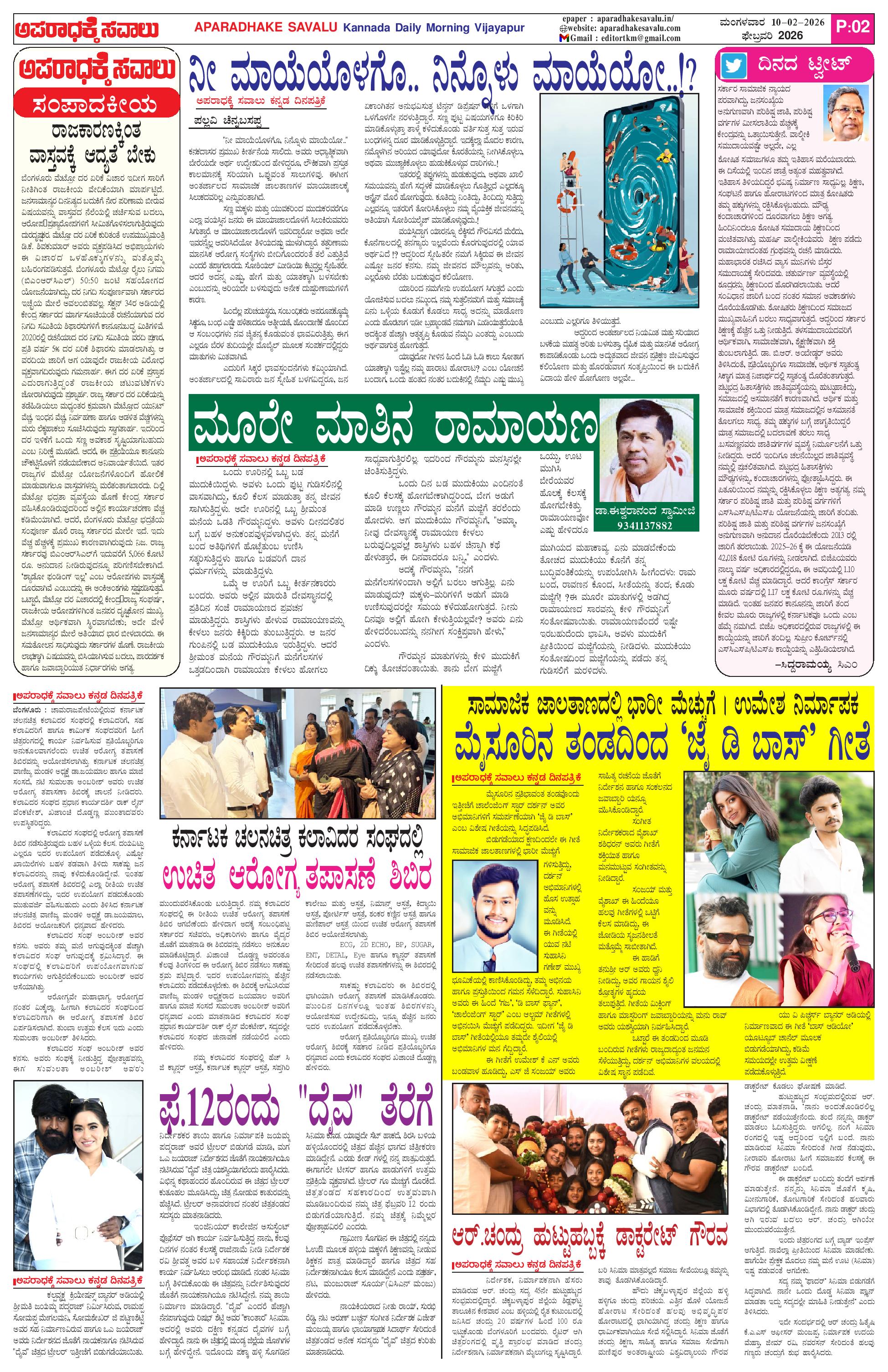 ಅಪರಾಧಕ್ಕೆ ಸವಾಲು FEBRUARY 10-02-2026 ePaper Page: 2 February 10, 2026 APARADHAKE SAVALU KANNADA DAILY MORNING NEWS PAPER VIJAYAPUR << First << 2 >> Last >> Page 1Page 2Page 3Page 4 × ಅಪರಾಧಕ್ಕೆ ಸವಾಲು FEBRUARY 10-02-2026 ePaper P-1P-2P-3P-4 << First << 2 >> Last >> P-1 P-2P-3P-4 P-2