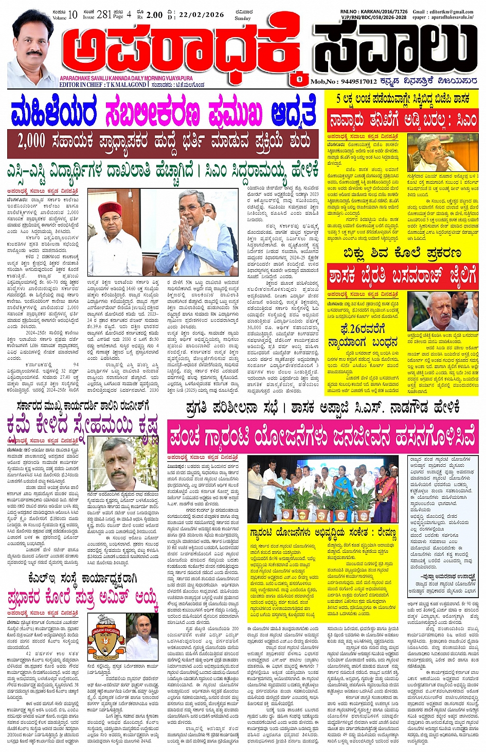 ಅಪರಾಧಕ್ಕೆ ಸವಾಲು FEBRUARY 22-02-2026 ePaper February 22, 2026 APARADHAKE SAVALU KANNADA DAILY MORNING NEWS PAPER VIJAYAPUR << First << 1 >> Last >> Page 1Page 2Page 3Page 4 × ಅಪರಾಧಕ್ಕೆ ಸವಾಲು FEBRUARY 22-02-2026 ePaper P-1P-2P-3P-4 << First << 1 >> Last >> P-1P-2P-3P-4 P-1