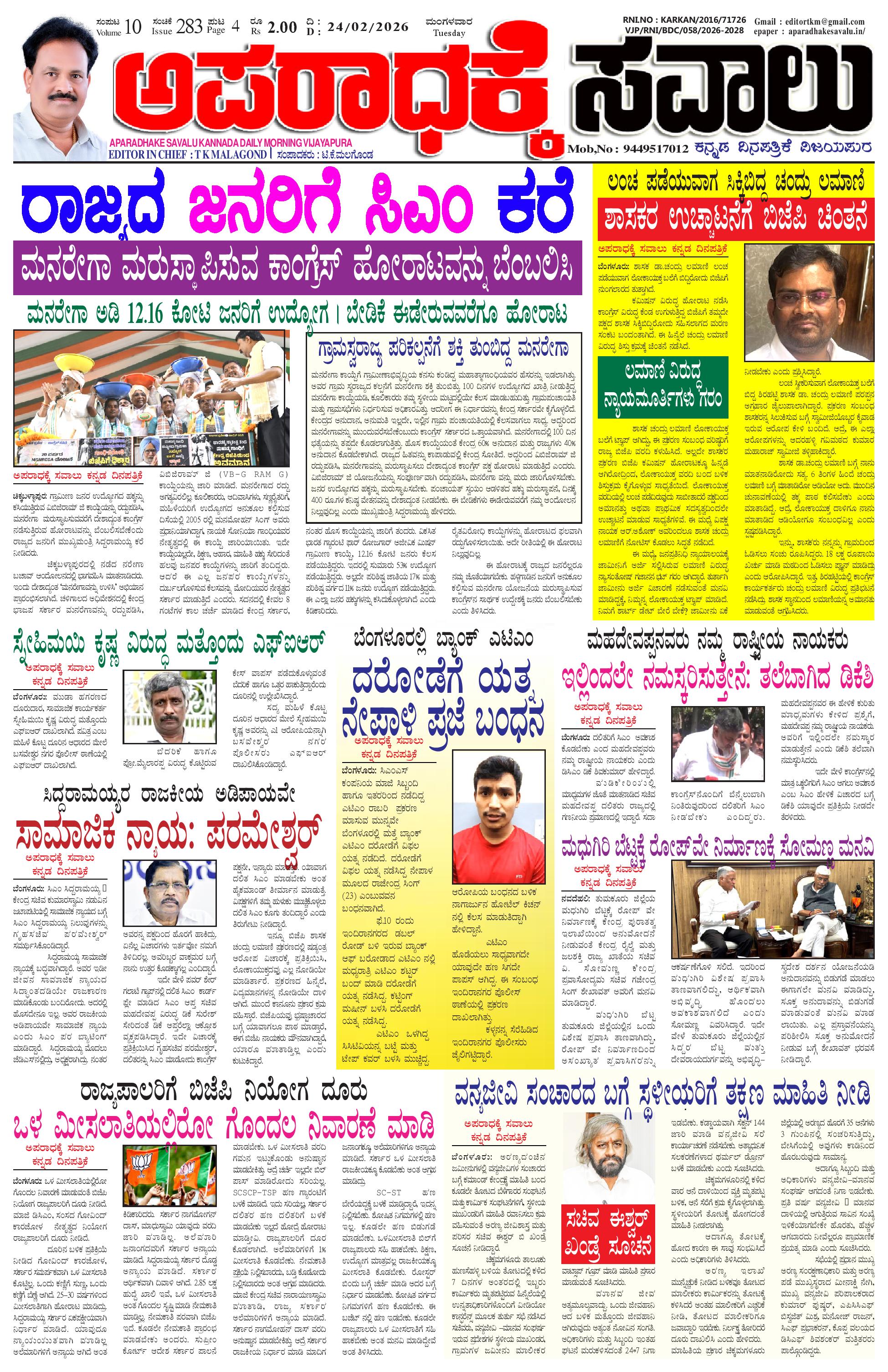 APARADHAKE SAVALU KANNADA DAILY MORNING NEWS PAPER VIJAYAPUR