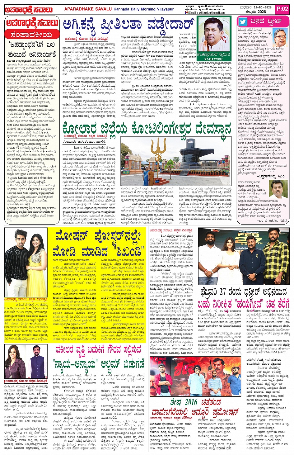 ಅಪರಾಧಕ್ಕೆ ಸವಾಲು FEBRUARY 25-02-2026 ePaper Page: 2 February 25, 2026 APARADHAKE SAVALU KANNADA DAILY MORNING NEWS PAPER VIJAYAPUR << First << 2 >> Last >> Page 1Page 2Page 3Page 4 × ಅಪರಾಧಕ್ಕೆ ಸವಾಲು FEBRUARY 25-02-2026 ePaper P-1P-2P-3P-4 << First << 2 >> Last >> P-1 P-2P-3P-4 P-2