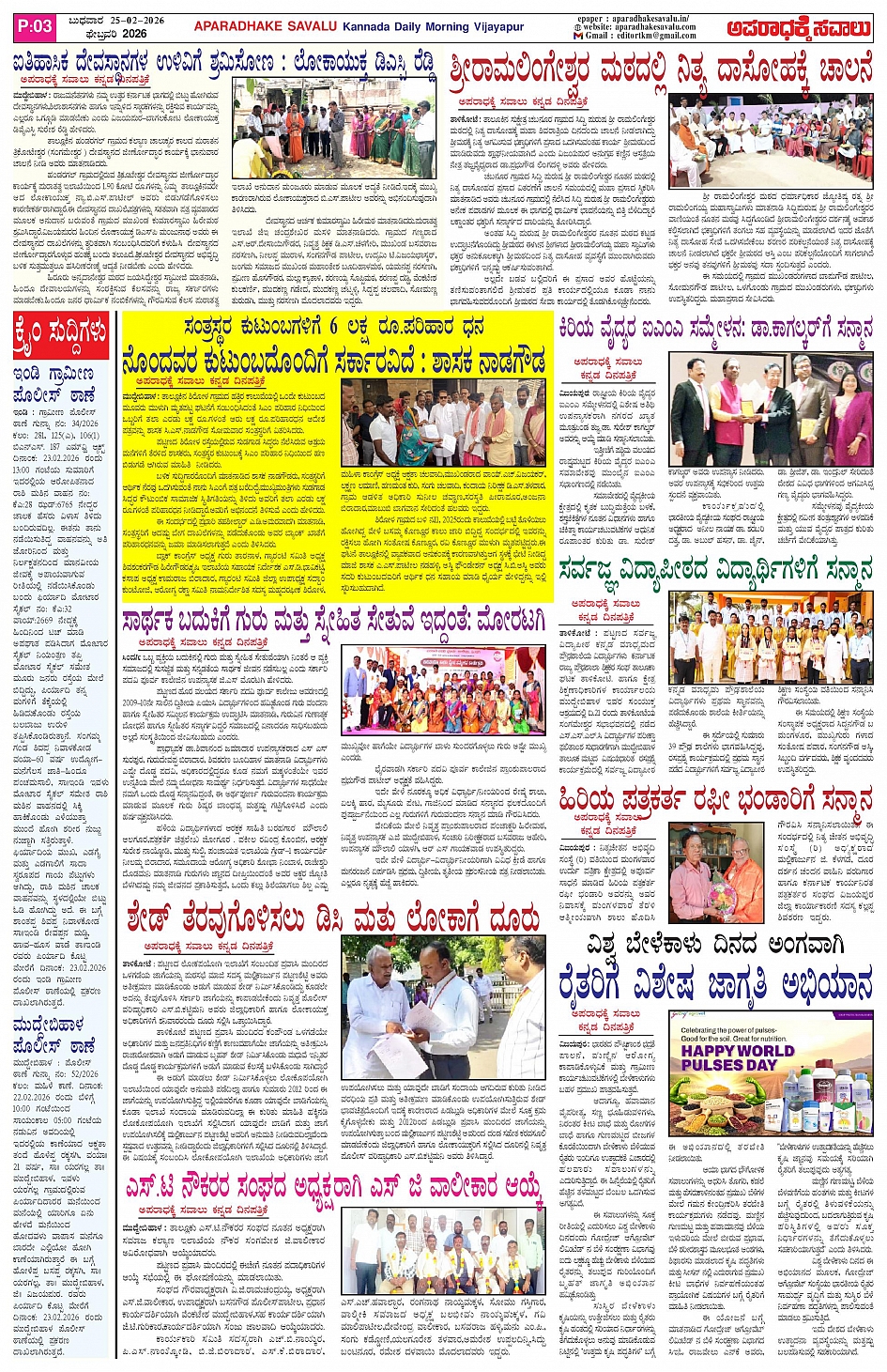 ಅಪರಾಧಕ್ಕೆ ಸವಾಲು FEBRUARY 25-02-2026 ePaper Page: 3 February 25, 2026 APARADHAKE SAVALU KANNADA DAILY MORNING NEWS PAPER VIJAYAPUR << First << 3 >> Last >> Page 1Page 2Page 3Page 4 × ಅಪರಾಧಕ್ಕೆ ಸವಾಲು FEBRUARY 25-02-2026 ePaper P-1P-2P-3P-4 << First << 3 >> Last >> P-1 P-2P-3P-4 P-3