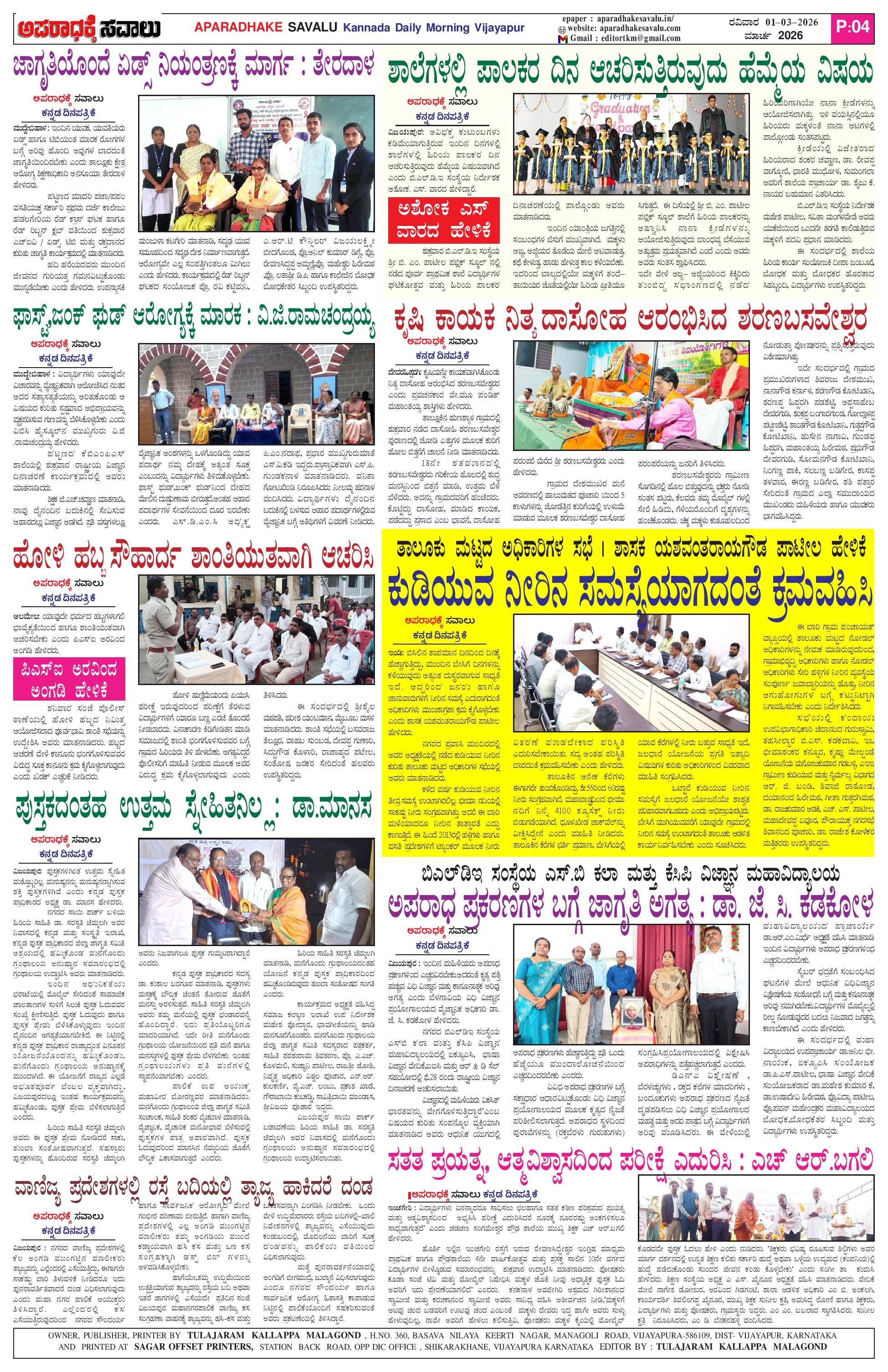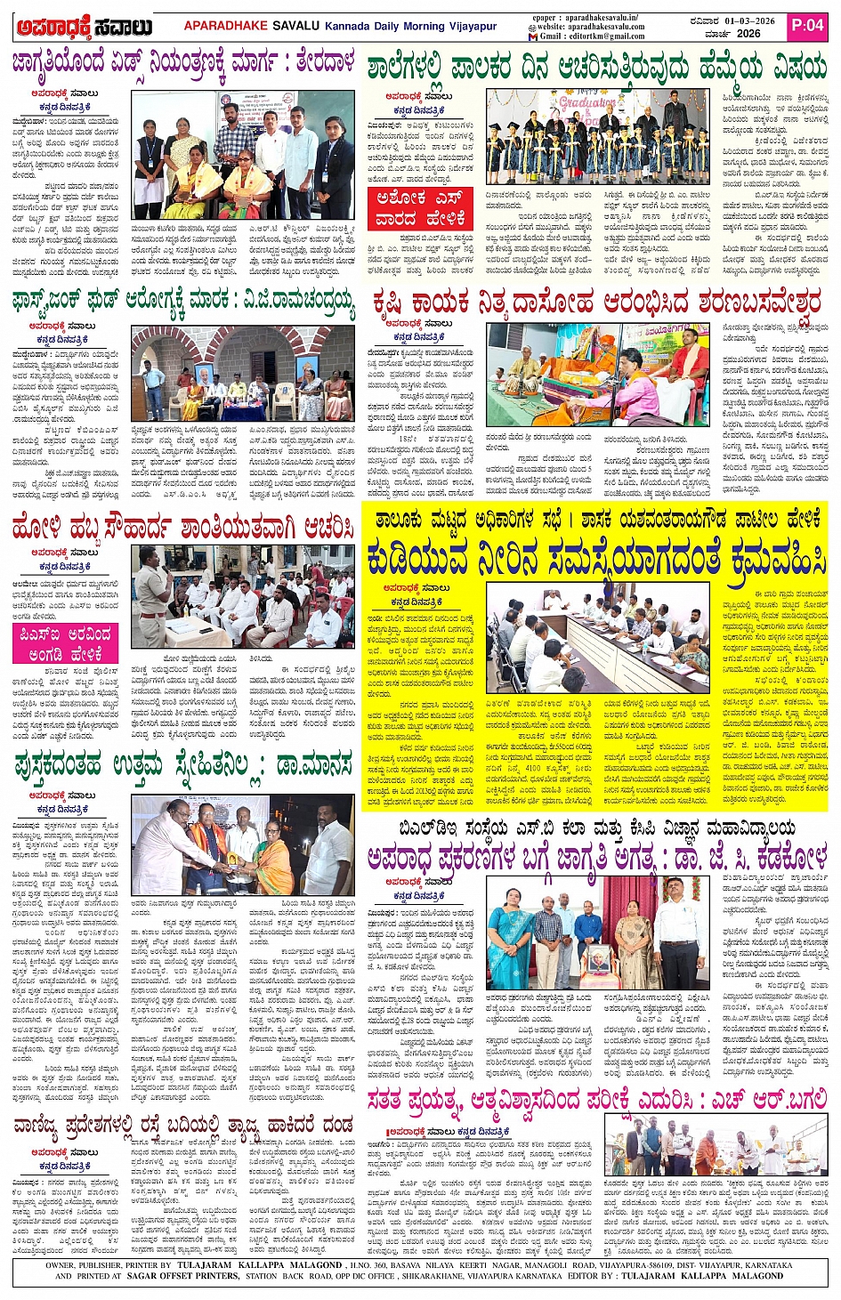 ಅಪರಾಧಕ್ಕೆ ಸವಾಲು MARCH 01-03-2026 ePaper Page: 4 February 01, 2026 APARADHAKE SAVALU KANNADA DAILY MORNING NEWS PAPER VIJAYAPUR << First << 4 >> Last >> Page 1Page 2Page 3Page 4 × ಅಪರಾಧಕ್ಕೆ ಸವಾಲು MARCH 01-03-2026 ePaper P-1P-2P-3P-4 << First << 4 >> Last >> P-1 P-2P-3P-4 P-4